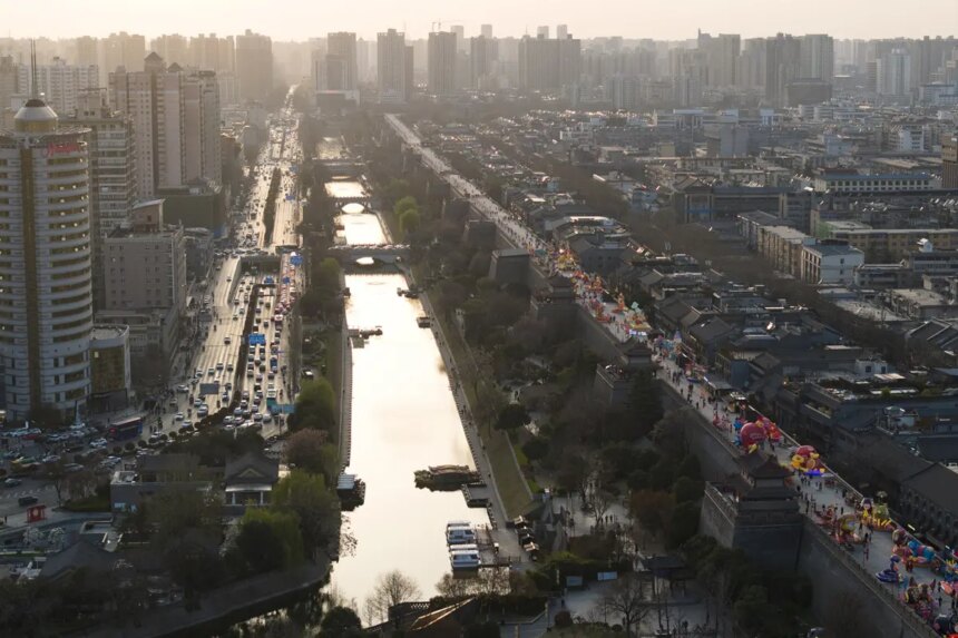 Risalente alla tarda dinastia Tang (904 d.C.) e completato durante la dinastia Ming (1368-1644), il fossato costituiva originariamente un sistema difensivo in combinazione con le mura cittadine. L’ultimo intervento di restauro ha chiuso l’anello, trasformandolo da una configurazione a “C” a una a “O”.