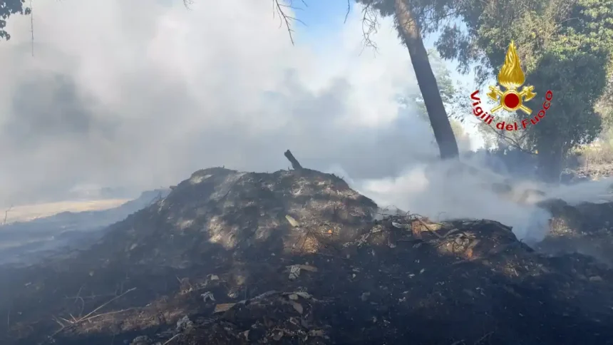 Ad andare a fuoco circa 7000 mq tra sterpaglie, rifiuti e circa 20 rotoballe poste in un terreno nelle immediate vicinanze che hanno generato una grossa nube di fumo nero visibile da molto lontano. Sul posto, per le operazioni di soccorso, è stato necessario fare intervenire anche due Autobotti ed un mezzo movimento terra. Le operazioni di spegnimento sono ancora in atto.